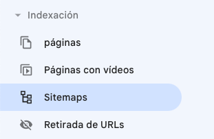 Ya dentro de la herramienta online Google Search Console encontraremos sus diferentes apartados y funcionalidades en el menú de la derecha. Para empezar solo nos centraremos en el menú “Indexación” y la sección “Sitemaps”.