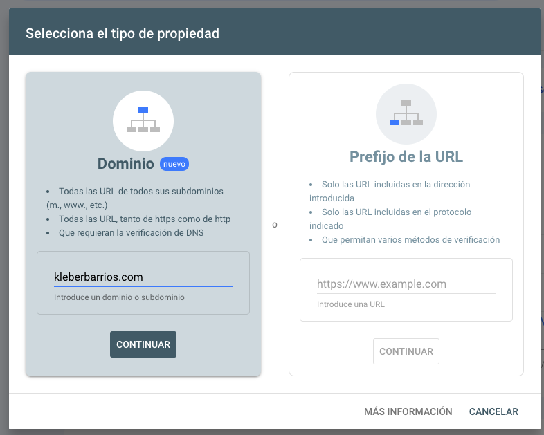 Seleccionamos el tipo de propiedad a verificar, nuestra recomendación es seleccionar directamente el dominio.